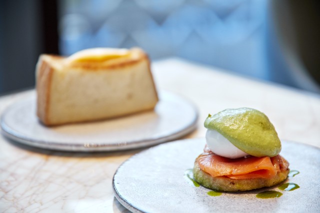 モーニングブッフェでは、東京・南青山のフレンチレストラン「L’AS(ラス)」の兼子シェフが監修した2種のシグネチャーメニューがスタンバイ。「エッグベネディクト」か「たまごサンド」のいずれか1品を選ぶことができます。