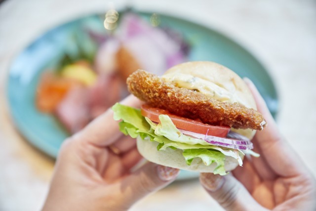 なかでもバンズに好きな食材を自由に挟み、オリジナルバーガーがつくれる「フィッシュサンド」はテンションが上がる一品です! 主役の「バリカツ」には、海藻を食べつくしてしまう“やっかいな魚”として知られるアイゴなどが使われており、環境保全にもつながっているそう。