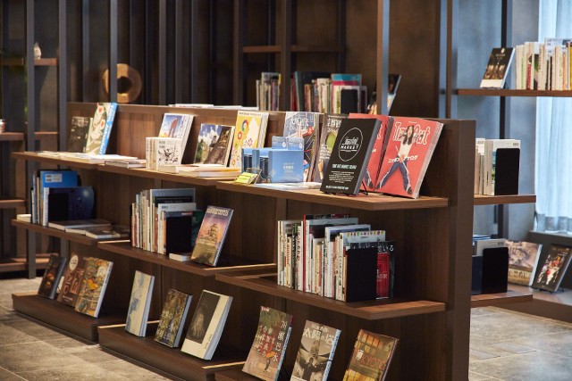 「メゾン ヴェルテ」があるホテルのロビー階には、関西にまつわる多彩な書籍や写真集などがそろうライブラリーもあります。朝食の前後にぜひ立ち寄って、気になる本を手に取ってみてください。