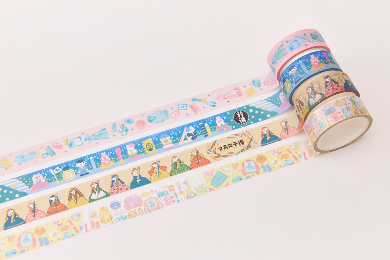 文具女子博人気企画である「マスキングテープくじ&ビュッフェ」では、「今日、どれにする?文具コーデ」モチーフの文具女子博オリジナルマスキングテープ全4種類のうち、どれか1つが必ずゲットできます。 さらに、箔ありデザイン(1柄)を引くと、豪華マスキングテープビュッフェに参加できるそう♡ 文具女子博メインビジュアル柄のほか、WORLD CRAFT書き下ろしデザイン3種も登場します。