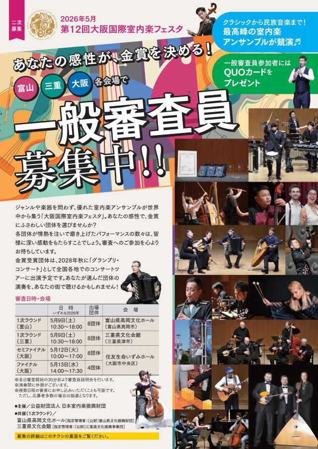 「第12回大阪国際室内楽フェスタ」一般審査員募集要項