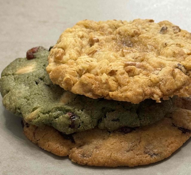 【前半】セイイチロウニシゾノ「アメリカンクッキー(アールグレイ、マッチャクランベリー、チョコチャンク」(各1個/521円)