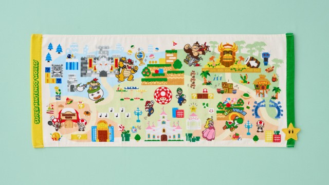 また、エリアのマップがモチーフの「スーパー・ニンテンドー・ワールド」の世界観をギュッと詰め込んだ、新デザイングッズも登場します。来場記念やおみやげとしてもおすすめの「フェイスタオル」は、「スーパースター」のワッペンをワンポイントとしてあしらい、パークの楽しさを持ち帰れるようなデザインが魅力です。