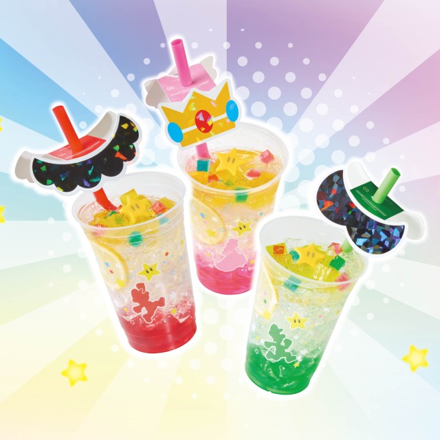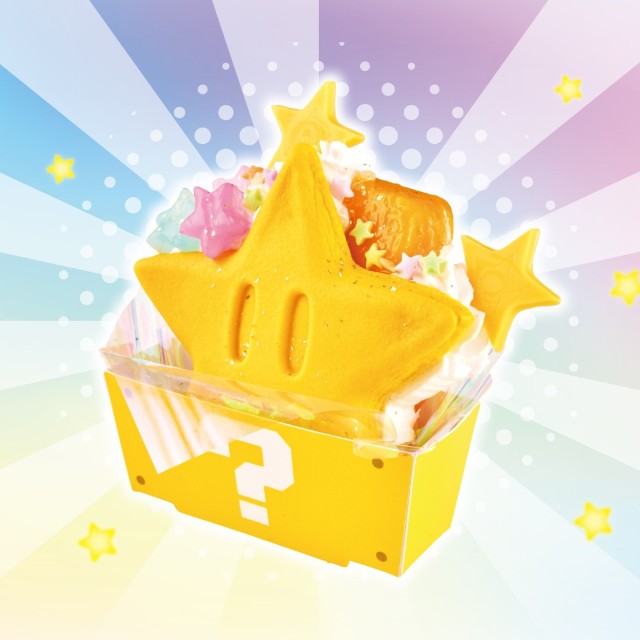 「無敵! スーパースター・パンケーキサンド ~マンゴー~」は、キラキラと輝くカラフルなパンケーキの中に、濃厚なマンゴー&クリームやカリカリ食感が楽しいスターの形をしたシュガーなど、見た目も味わいもワクワクするトッピングが詰まっています。「マリオ・カフェ&ストア」の特別なドリンクも、今だけ「スーパースター」でキラキラにパワーアップ! ゼリーたっぷりのソーダを飲んで元気をチャージしてください。