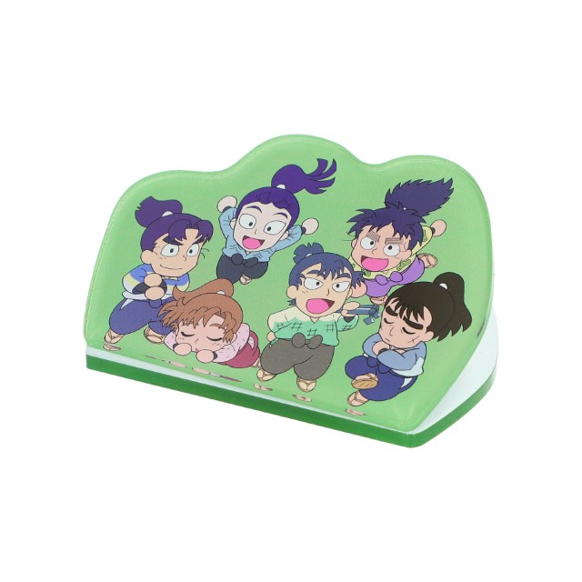 吸水性のよいパイル地の「ミニタオル」は、麻の葉文様をベースにフェイスデザインと各キャラクターをイメージした手裏剣や出席簿、宝禄火矢などのモチーフをあしらい、名前が入った“千社札”デザインが魅力。全17種類・17人のキャラクターがそろっているので、どれを購入するのか迷ってしまいそうです。