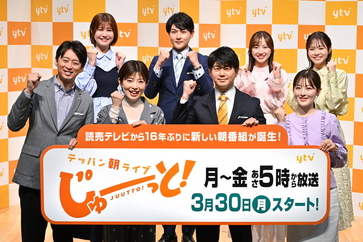 読売テレビの朝の新情報番組『テッパン朝ライブ じゅーっと!』が、2026年3月30日(月)にスタートします。朝の新番組立ち上げは実に16年ぶり。発表会見では、出演者たちが番組への意気込みを語りました。
