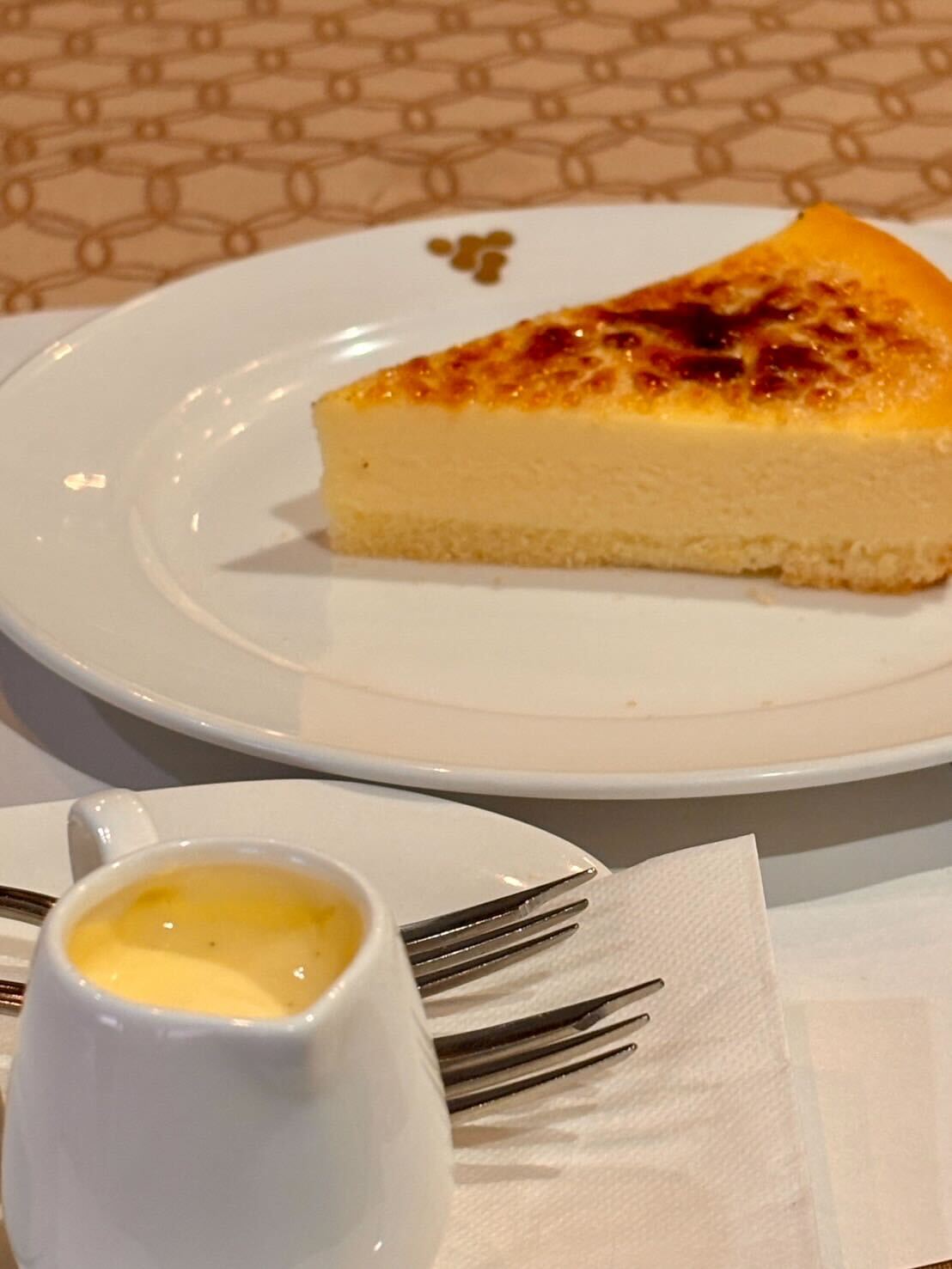 そして、六甲山牧場で製造されたチーズを使った料理も魅力のひとつ。表面をこんがりブリュレした「ブリュレチーズケーキ」は、カリッとした食感のあとに濃厚なチーズの風味が広がります。そこにさらにチーズをかけていただく贅沢な一皿は、思わず笑顔になる美味しさでした。