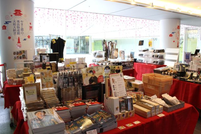 展示を満喫した後は、エントランスホールに設けられた「やまと郡山・秀長物産館-大和大納言-」でお土産にも注目。秀長に関連する商品や戦国時代の文化をイメージさせる商品などが勢ぞろいします。