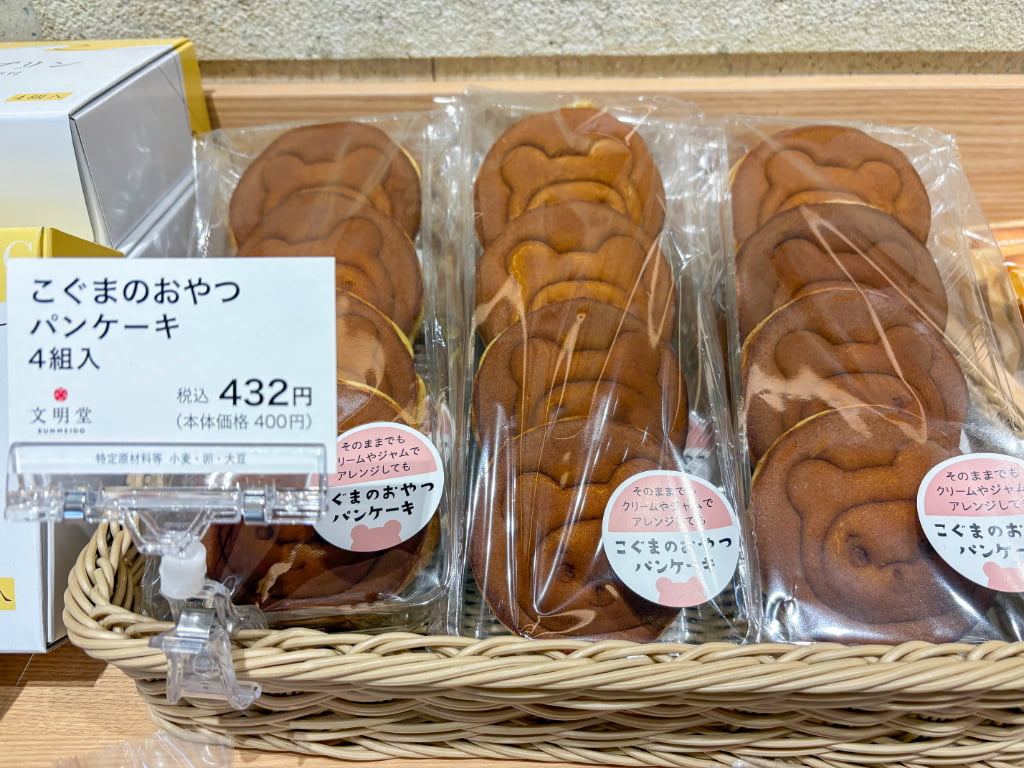 ほかにも店舗限定商品が豊富にラインナップ。「こぐまのカステラサンド(ざらめ&カラメル)」は、スタンダードなカステラを仔グマの形のどら焼き生地でサンドした商品。キュートなルックスがたまらないかわいさです! カステラと生地をつなぐ煉乳クリームもアクセントに。