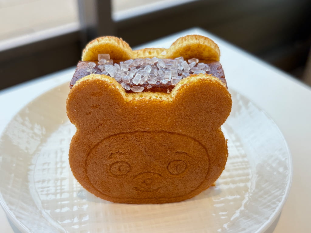 スッキリとした甘さと、焼きたてならではのふわふわと軽い食べ心地が魅力。伏見店オリジナルデザインの仔グマの焼印を押して、食べきりサイズにカットしました。3月は季節限定の「いちご」(324円)も提供されます。