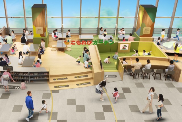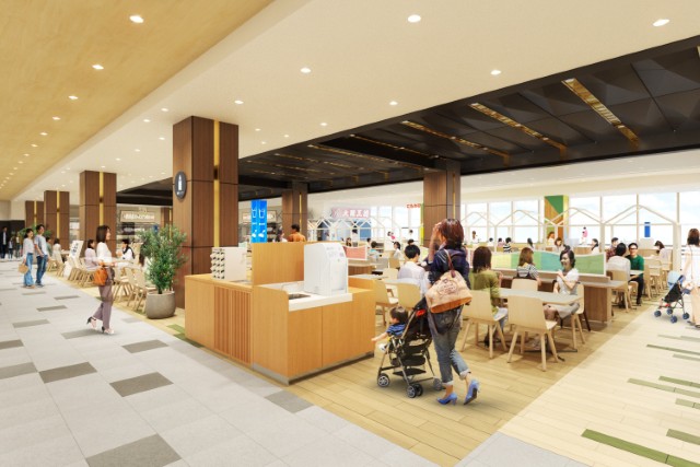 中央エリアには落ち着いて食事できるBOX席を新設するほか、フードコート奥の「こもれびガーデン」には、こども向けアニメが放映されるモニターを設置。ファミリーがより過ごしやすい設備が充実しています。
