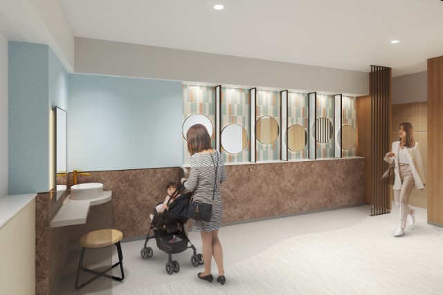 3階東側(フードコート横)の女子トイレ内のパウダースペースも改装し、身支度の時間も心地よく過ごせそう。