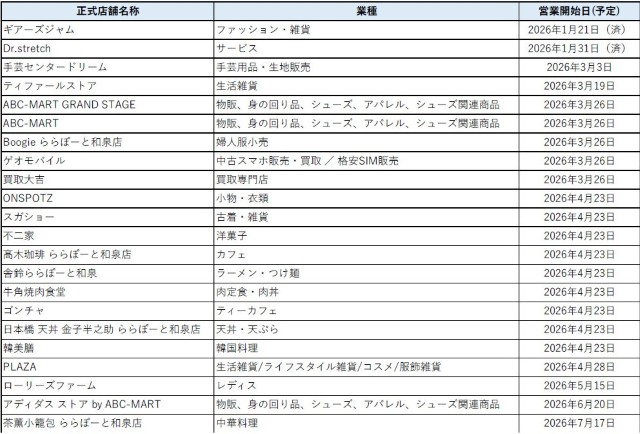 【ららぽーと和泉】関西初出店などを含む30店舗が順次オープン&リニューアル!