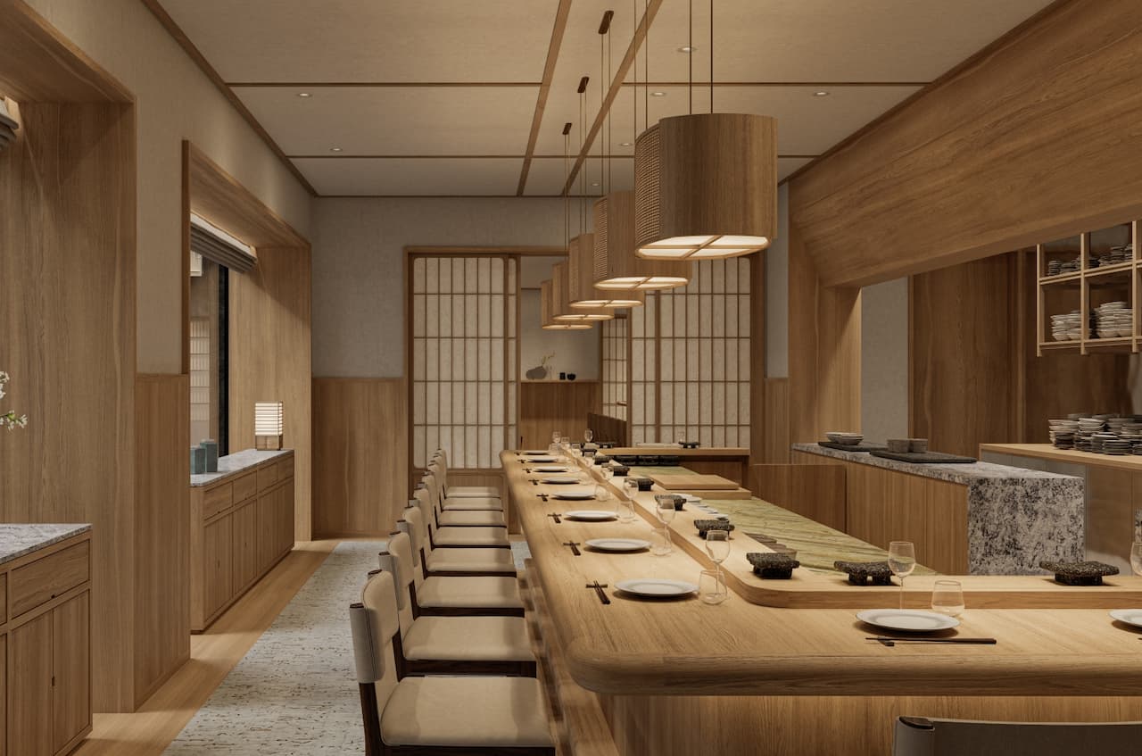 館内にある「カペラ京都」のシグネチャーレストラン「SoNoMa by SingleThread(想乃間 by SingleThread)」は、カリフォルニア州ソノマを拠点とするミシュラン三つ星レストラン「SingleThread(シングルスレッド)」とのパートナーシップにより誕生。12席のカウンターと20席のラウンジバーを備える、お茶屋から着想を得た親密な空間が魅力です。