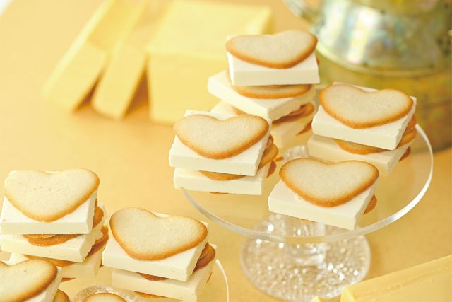 バタースイーツブランド「バターの女王」のハート型がかわいい「バターラングドシャ」は、手みやげにしたら喜ばれそう。