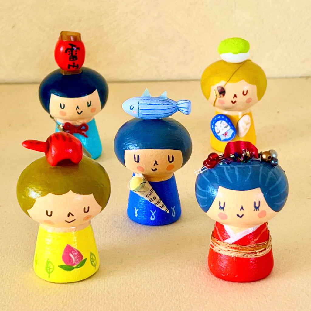 仙台の四季折々の風景が溶け込んだ「旅こよみ」シリーズに加え、伊達政宗の三日月兜やずんだ餅を頭にちょこんと乗せた子など、思わず笑顔がこぼれるゆるかわで愛らしいこけしたちがやってきます。