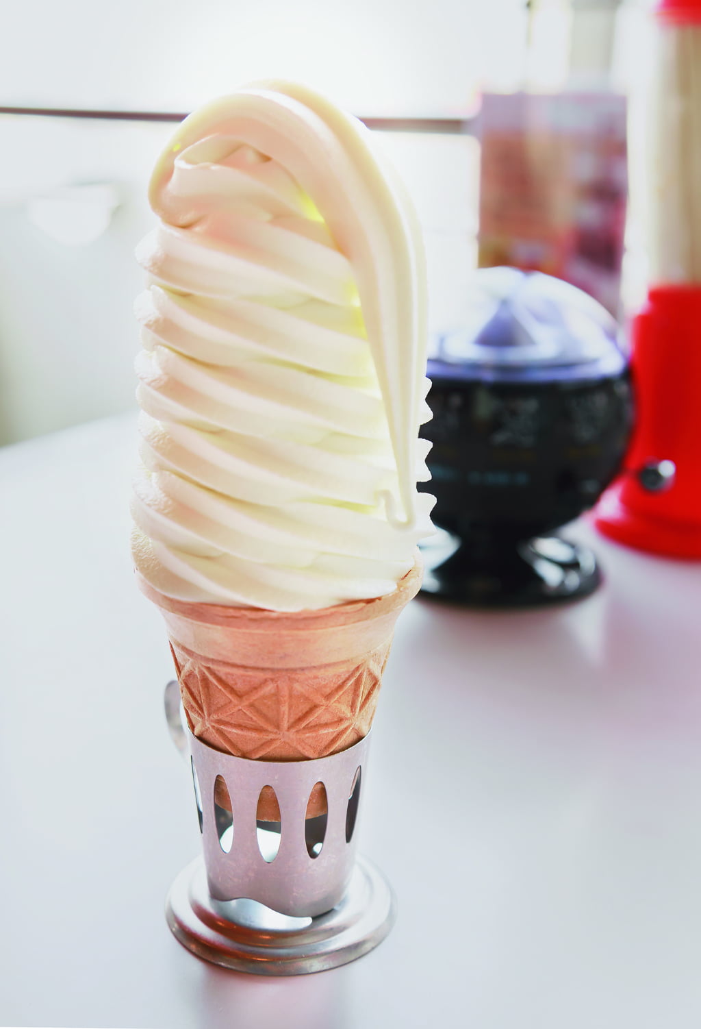 さらに関西初登場グルメとして、「マルカンビル大食堂」の「7段ソフト」がお目見え! お箸で食べるのが定番スタイルという、高さ約18cmのソフトクリームです。