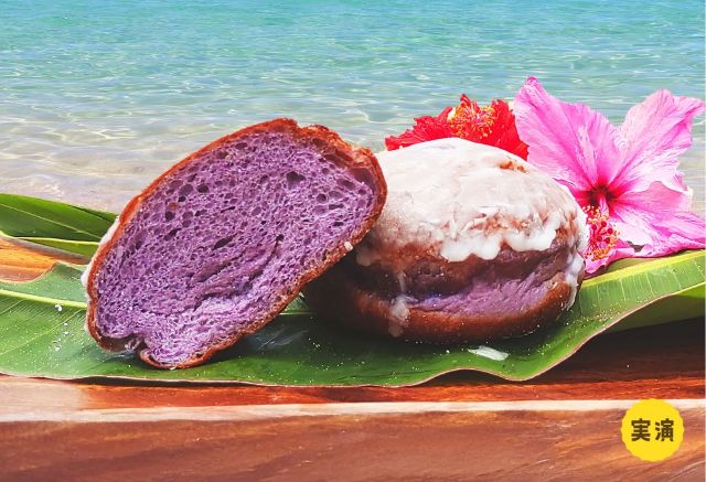 揚げドーナツ「マラサダ」に、沖縄県産の紅イモを生地に練り込み、シュガークレイズをコーティングした、新たなローカルフードが実演販売されます。