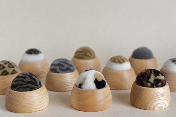 「けだま製作所」好みの柄に猫のひげを刺して飾れる“ひげ山” -