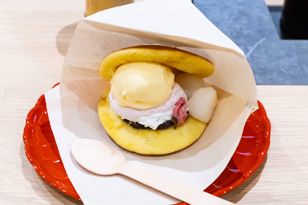 1716年創業の京都を代表する老舗のひとつ、笹屋伊織が和カフェ「SASAYAIORI+太秦映画村」を出店。「福来(ふっくら)どらやき桜スペシャル」は、春限定のアイテムで、桜あんに桜の塩漬けをトッピングした春らしい色合いも楽しいひと品です。
