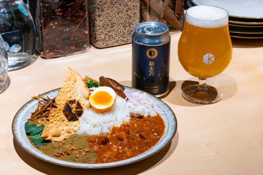 「味隠」は京都市南区でクラフトビールを製造している京都醸造株式会社の直営店。おみやげ用のユニークなビールのほか、スパイスカレーも楽しめます。