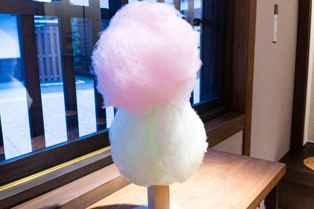 「zarame -gourmet cotton candy-」は、独自配合のザラメをベースに京都産、国産素材をメインに厳選してトッピングした綿菓子を提供。見た目のかわいさと上質な甘みがポイントです。