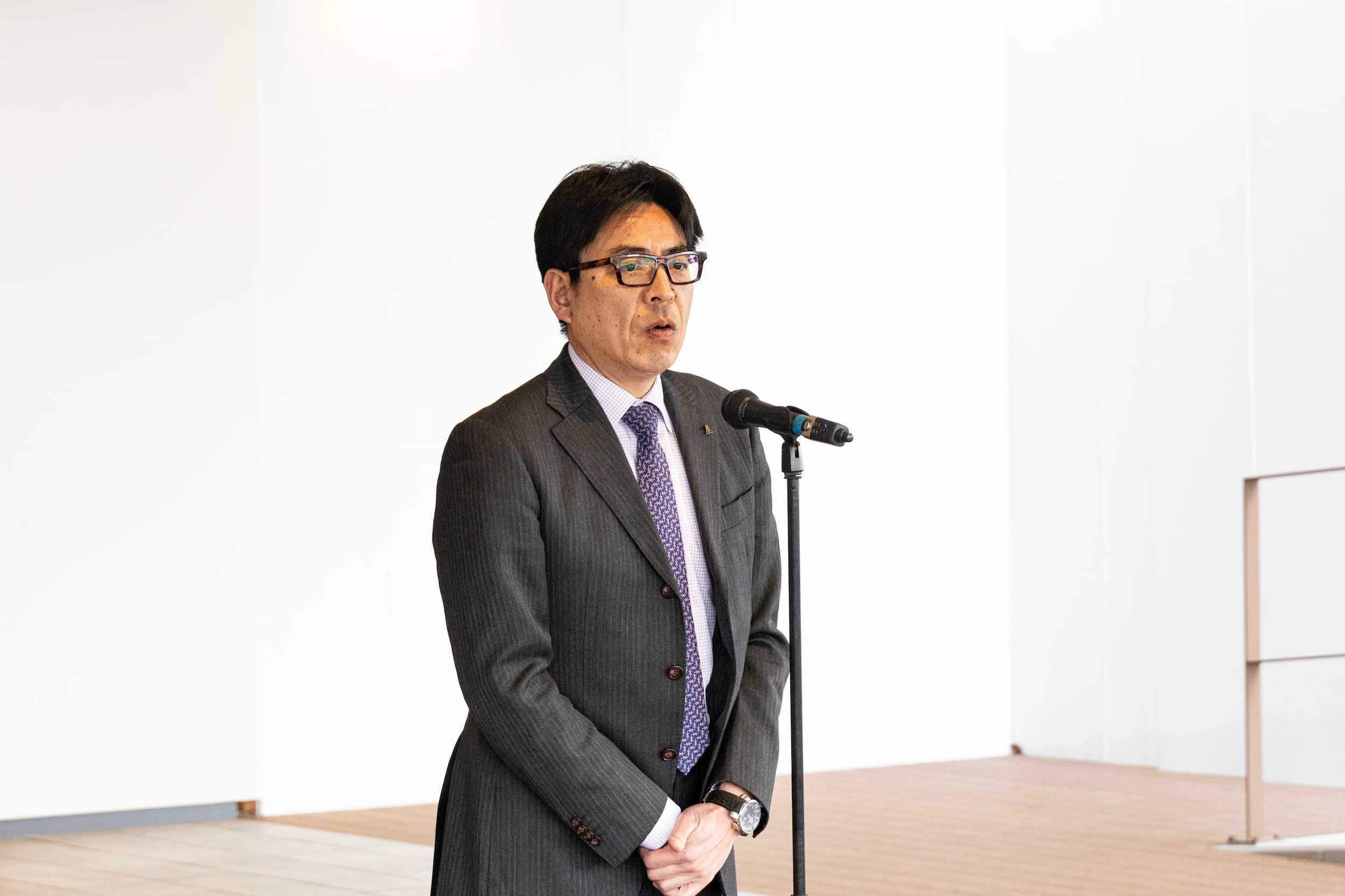 内覧会は株式会社東映太秦映画村 代表取締役社長 鎌田裕也氏の主催者挨拶から。鎌田氏は、映画村の独自性をさらにアピールしていきたいと話すと、新しい「360°リアルタイムドラマ」についても触れ、役者の活躍を楽しんでもらいたいとアピール。さらにR-18のアトラクションについては、昼とは違う夜の映画村を見ていただきたい、と訴えました。