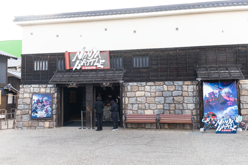 「NINJA BATTLE-太秦⻤決戦-」は、来場者が見習い忍者になって敵と戦うアトラクション。異世界「SHINOBI」からの精鋭忍者NINNINとともに忍者村の平和を取り戻すミッションに挑みます。所要時間は20分ほどで、臨場感あふれる演出は迫力満点!