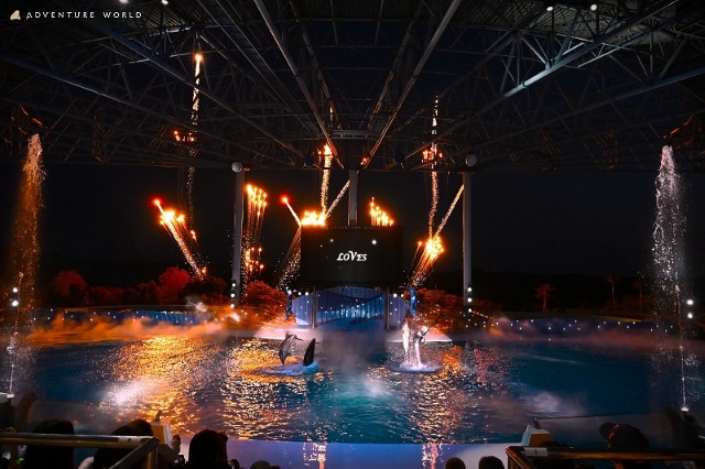 夜の静寂に包まれた「ビッグオーシャン」で繰り広げられるのは、イルカ・クジラとトレーナーがまっすぐな愛の物語を紡ぐナイトマリンライブ「LOVES」。
