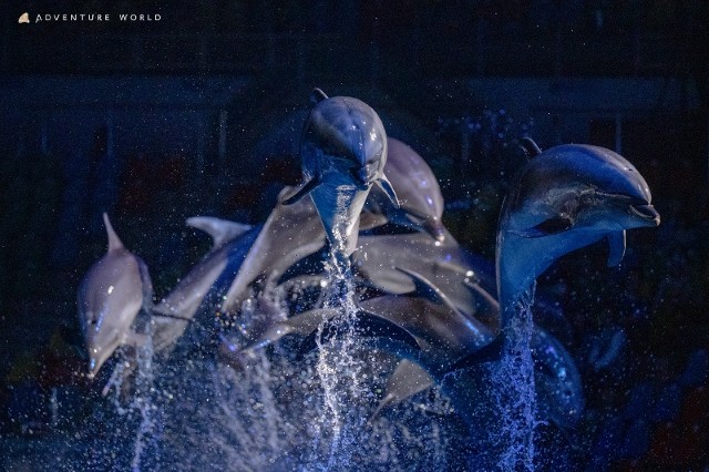 言葉を持たずとも信じ合うその姿を見ていると、生命の尊さを改めて思い出させてくれるよう。夜だからこそ鮮明に輝く光と音楽、そして水しぶきが、至福の癒しの時間を届けてくれます。