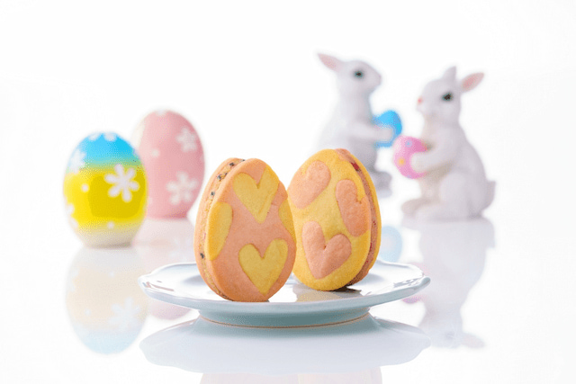 また、春の訪れを祝う「幸せのたまご」のサブレにも注目。2種類の生地をハートでくり抜き、丁寧にはめてかわいらしく仕上げています。