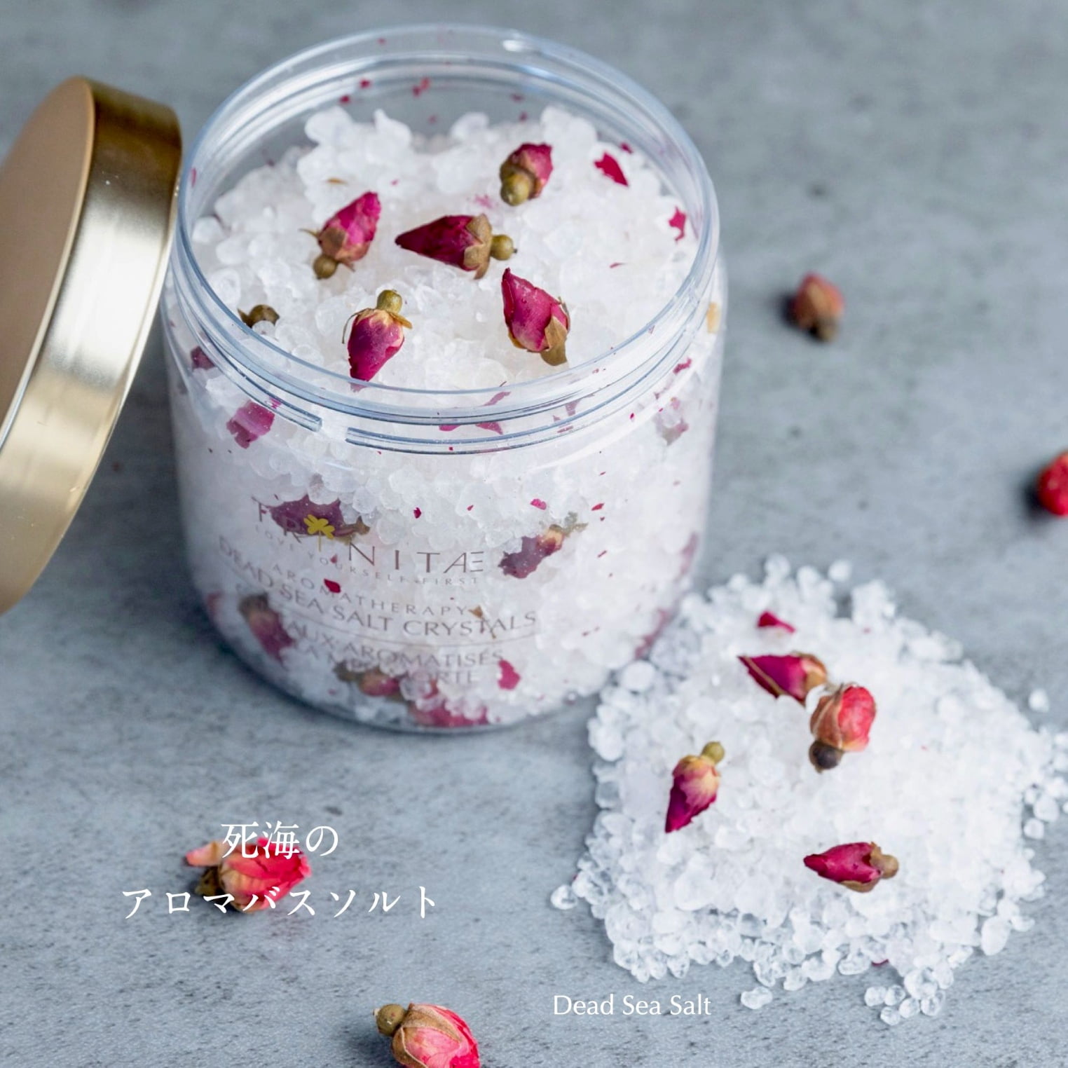 「アロマバスソルト ローズ(浴用化粧料)」にも注目を。お肌に潤いを与えるミネラルを含む死海の塩に、ローズの香りをブレンドしています。