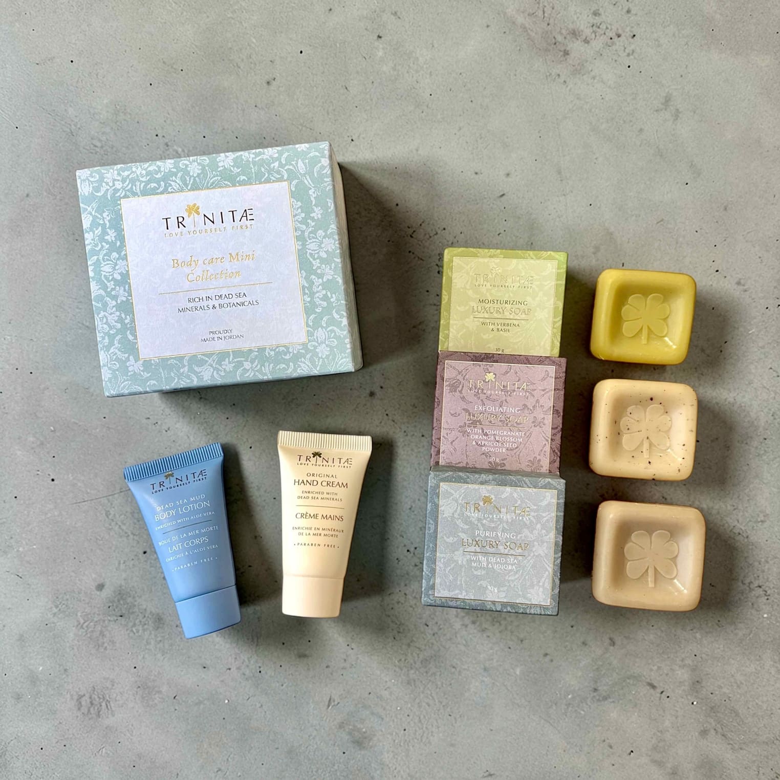 「TRINITAE」は、1935年に石鹸作りを始めた一家の3代目・アザール夫妻によって、2000年にヨルダンで誕生。ヨルダンの自然資源である「死海」の成分とアロマテラピーを融合し、心も体も心地よさを感じるスキンケア製品を追求し続けています。