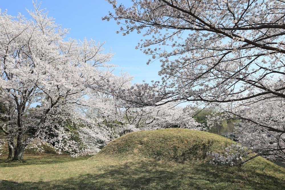 ぽこぽことしたかわいい古墳を覆う「桜の屋根」