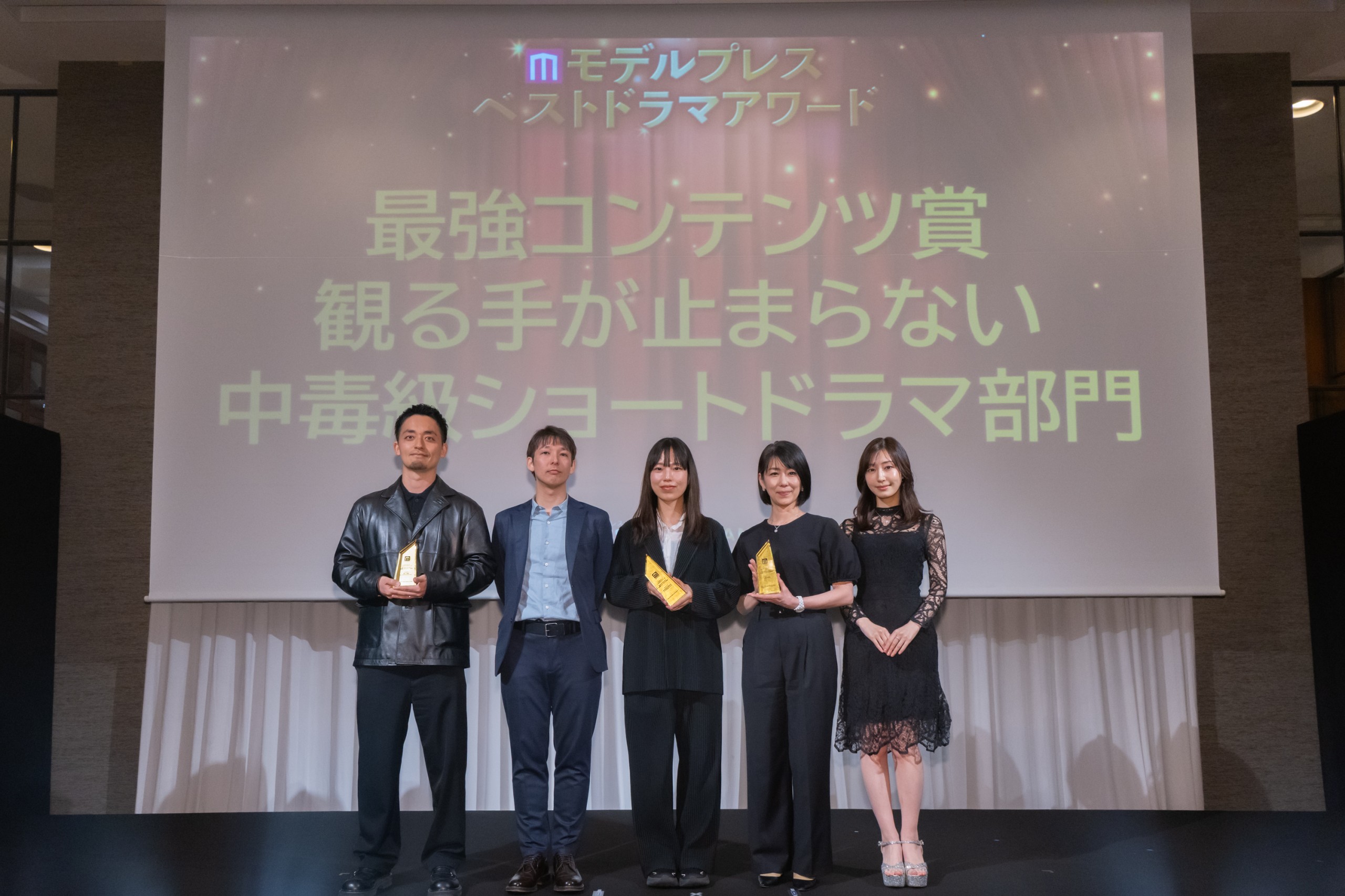 「本日はこのような素晴らしい賞をいただき、本当にありがとうございます。私は原作漫画と脚本を担当させていただいたのですが、原作から小林プロデューサーと一緒に開発することができて、すごくいい経験になりました。ショートドラマは1話約2分という短い尺の中で、一瞬で人の心を掴むような魅力的なコンテンツだと思っています。縦型のスマホでドラマを観る方が増えた今、大きな可能性を感じています。今後も、短い時間でも長く人の記憶に残るような、刺激的で面白いコンテンツを作っていけたらと思っています」