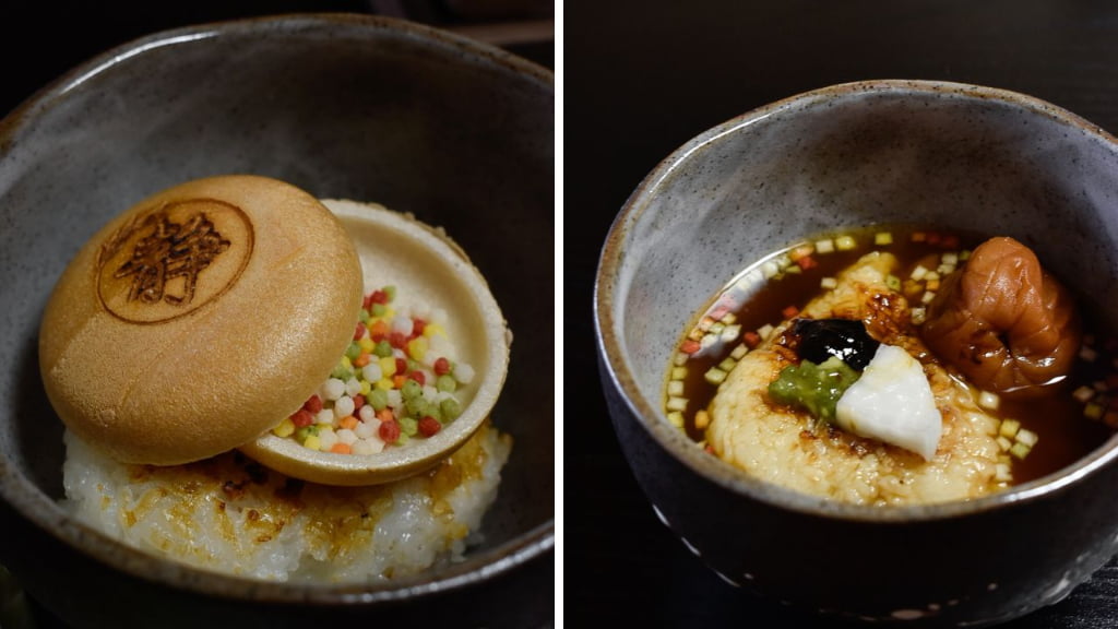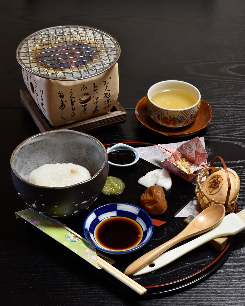 おにぎりは、お出汁をかけてお茶漬けにして味わうのもおすすめです。20種類から選べる「健一自然農園(奈良市)」の大和茶と一緒に、ほっこりとした時間を過ごしてみては?