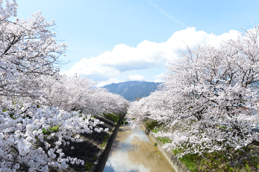 近代には紡績業が盛んになり、現在もまちを歩けば、往時の活気を色濃く残す昭和レトロな景観の数々に出会えます。 そして、まちの中央を流れる高田川沿いは、春になると見事な桜が咲き誇る県内有数のお花見スポット! 「高田千本桜」の名で長く親しまれ、毎年多くの人々を魅了しています。
