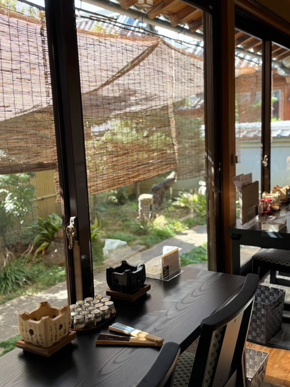 源義経の恋人・静御前(しずかごぜん)ゆかりの地に建つ古民家カフェ「静カフェ」。ここでは、各テーブルに用意されたミニ七輪を使って、自分でお団子やおにぎりを焼く楽しい体験ができます。パチパチと香ばしく焼ける音に耳を傾けながら、焼き上がったら豊富なトッピングで自分好みにカスタマイズ!