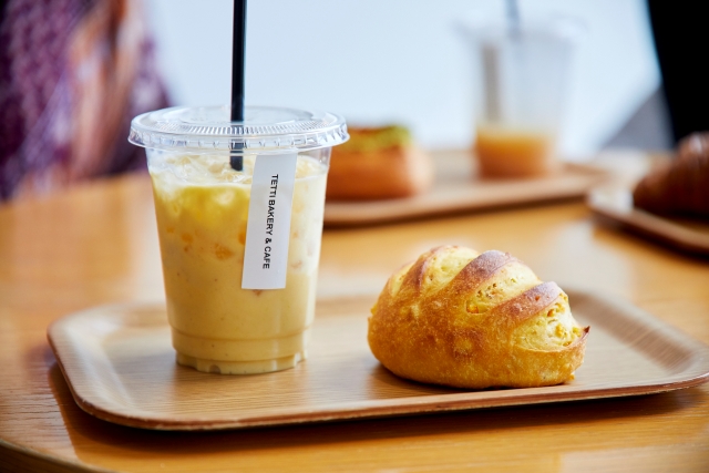 それぞれパンとドリンクを購入し、ゆっくり旅の計画を立てました。朝7時から営業しているので、朝ごはんに利用するのもいいですね。