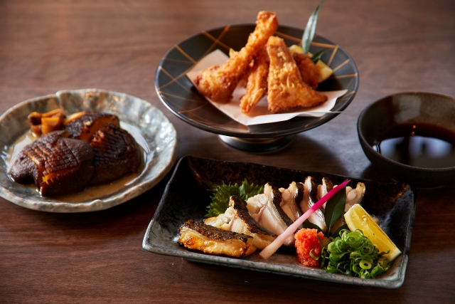 衣はサクッと、身はふんわりと柔らかいクエの唐揚げは、白身魚特有の上品な味わいながら、コクのあるおいしさが広がります。