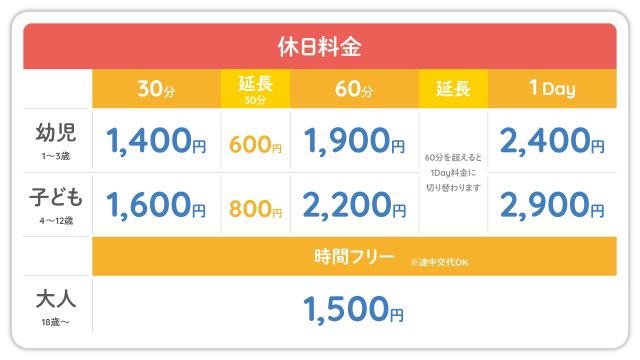 チケットの販売は、2026年5月頃からいこーよ・アソビューにて予定しています。平日料金と休日料金があるので、詳細は公式サイトで確認を。