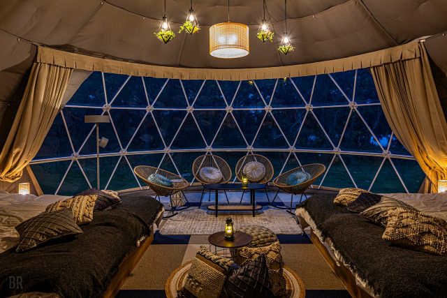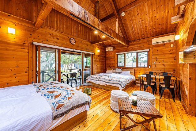 客室はコテージ、ドッグヴィラ、ドームテントまで揃い、全室冷暖房完備で小さなお子様さん連れやグランピング初心者でも安心。冷蔵庫内のドリンク(アルコール・ソフトドリンク)は、すべて無料になるうれしいサービスもあります。