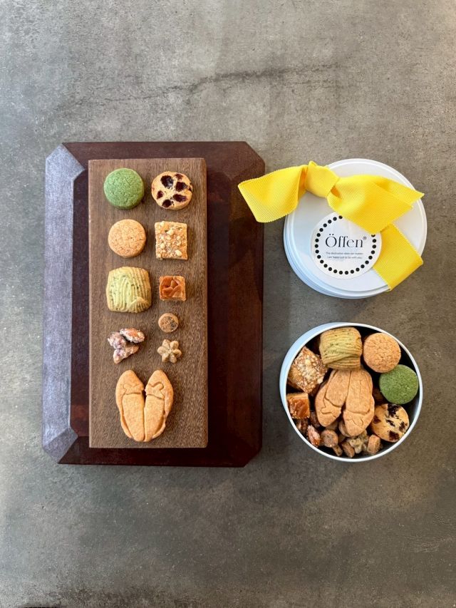 Öffen x amasora のコラボクッキー缶が登場。オッフェンのシグネチャーである「靴型クッキー」や、futchaの抹茶、PHYTO APOTHECARYのハーブを練り込んだフレーバーなど、10種類のクッキーがセットに。