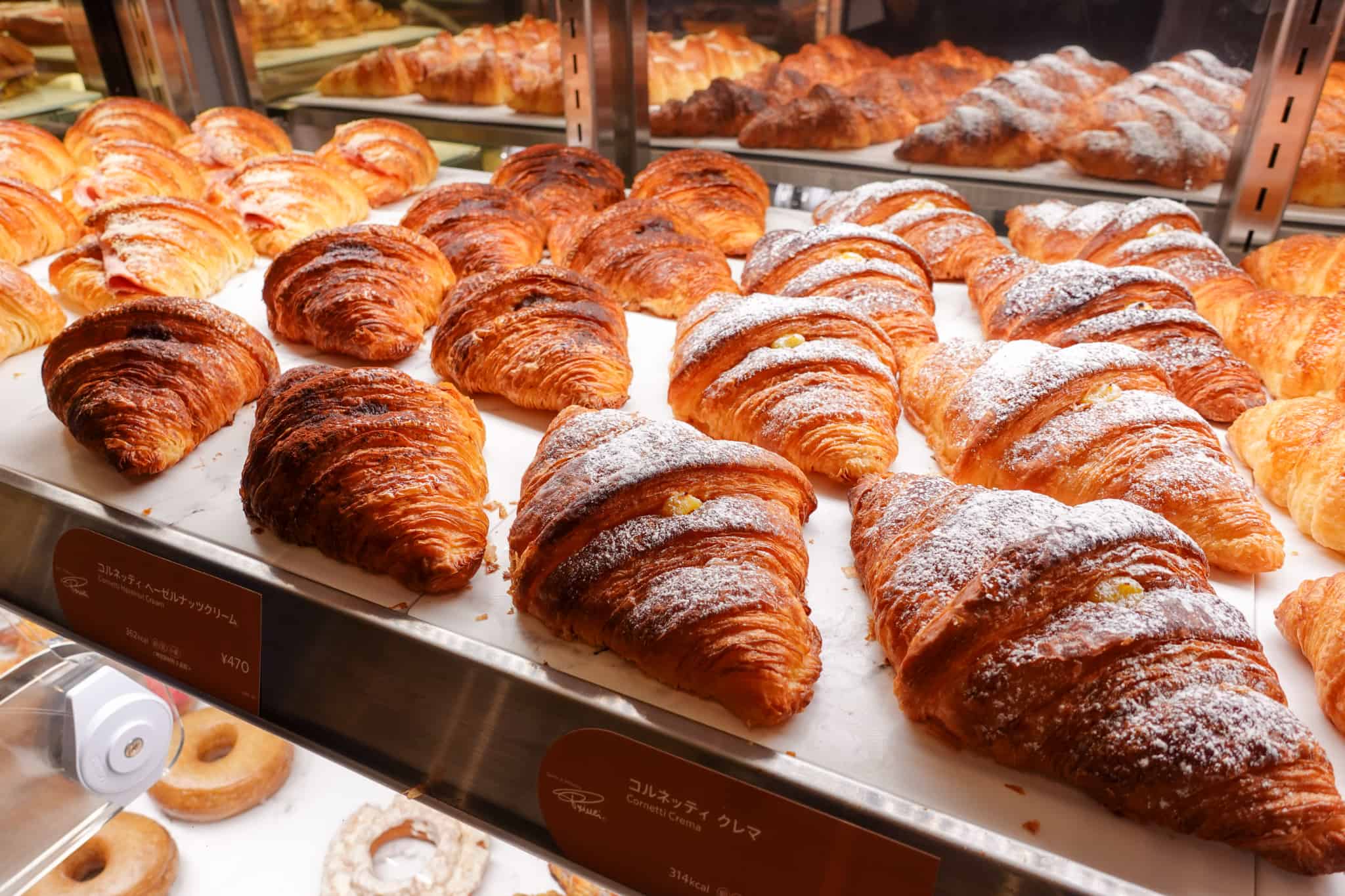 ショーケースに並ぶパンは、オリジナルトングでセルフピック。店内で焼き上げているので、朝一番は焼きたてクロワッサンの香ばしい香りが広がり、思わず足を止めたくなりそうです。