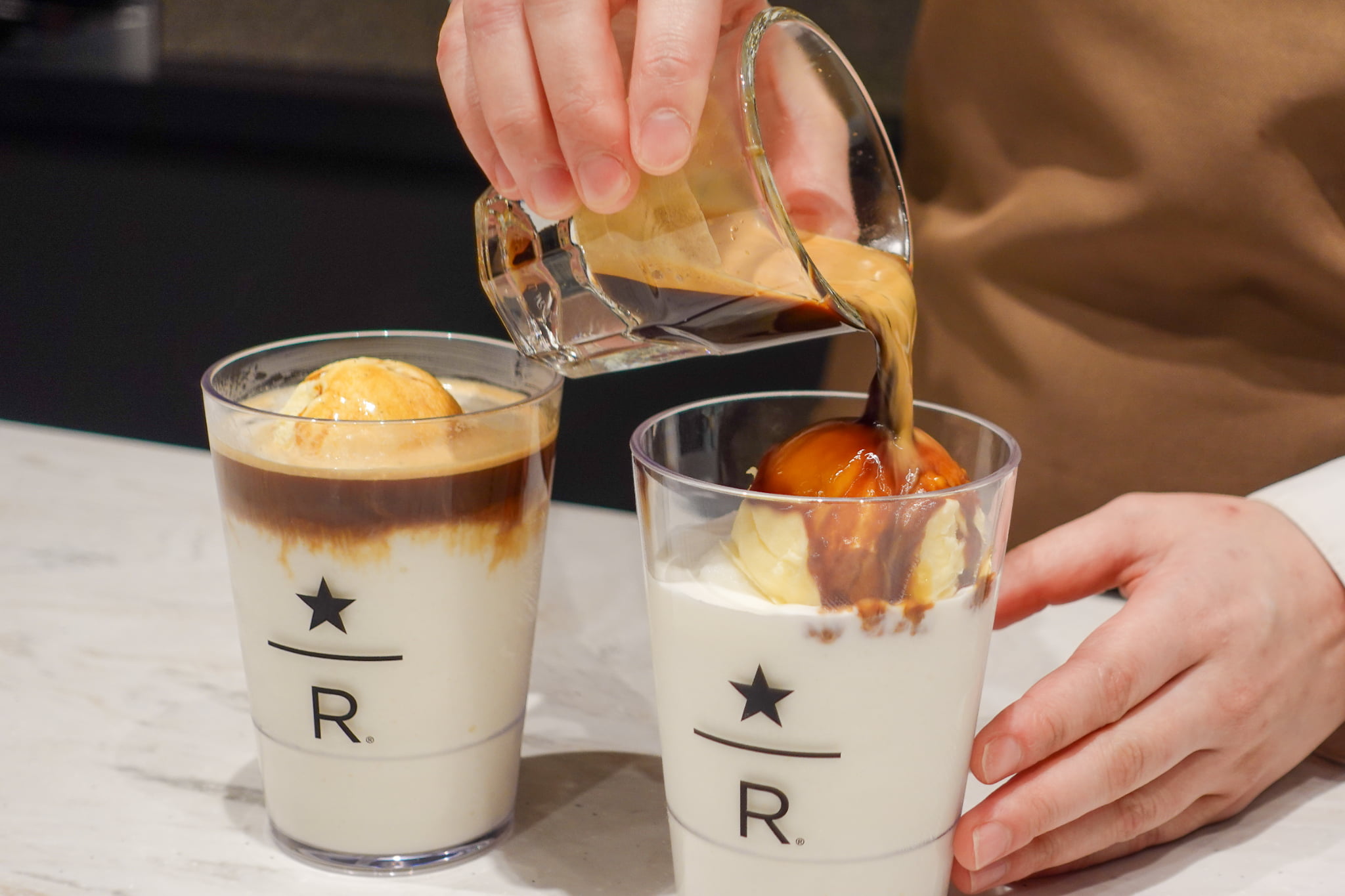 フラペチーノにも「スターバックス リザーブ(R)カフェ」限定のフレーバーが登場。「スターバックス リザーブ(R)エスプレッソ アフォガート フラペチーノ(R)」は、ミルクベースのフラペチーノにバニラアイスをのせ、エスプレッソを注いだもの。とろける甘さと深いコクのコントラストが際立つ一杯です。