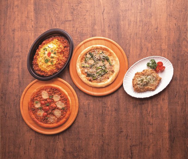 ミラノ亭Deli「ボロネーゼピザ 」880円、「菜の花とキャベツとちりめんじゃこのピザ 」780円 各1枚 径約20cm【各日限定数50】