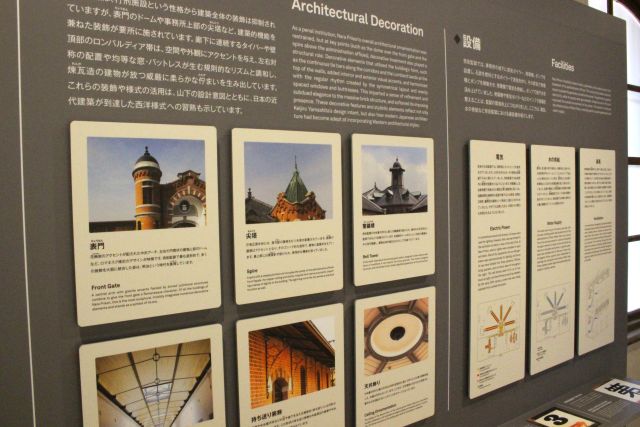 受刑者自らが製造・積み上げたレンガで造られた旧奈良監獄の歴史や、美しい建築の意匠を模型やイラストで紹介。また、1946年に「奈良少年刑務所」と改名してからの、取り組みなどにも触れられる内容になっています。