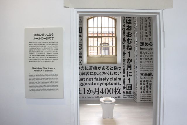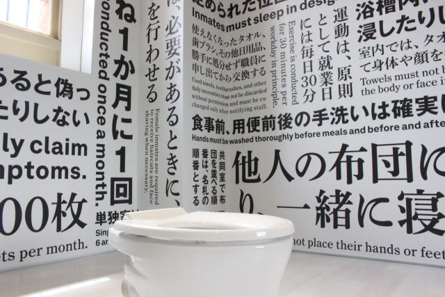 「衛生」をテーマにした展示では、受刑者は清潔を保つこともルールとされ、「トイレに行くには」「入浴時間は」など、刑務所の決まりをグラフィカルに表現。