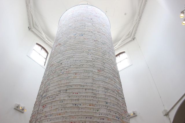 作品の内側に入ると、たくさんの声なき声に包まれるような感覚に。