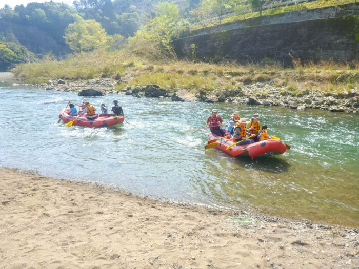 公園周辺の川遊びもお忘れなく。GW~10月まで開催されているラフティング体験では、60~90分ほどかけてゆっくりと自然を満喫しながらボートに乗れますよ。ボートにはインストラクターが同乗するので安全面もばっちり。1週間前までに予約が必要なので、予定が決まったらお早めにご予約くださいね。